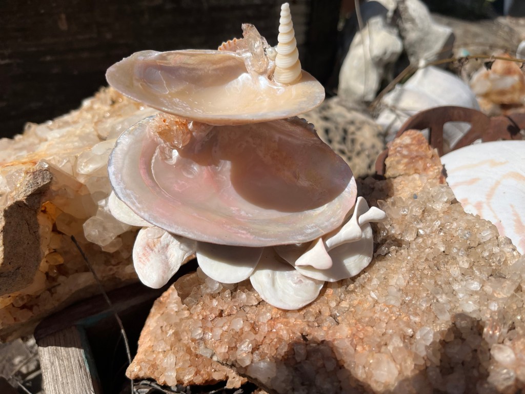 Since I was a little girl seashells were my favorite thing about going to the beach. In the year of 2024 I started going on fishing trips with my brother and my father. The beach that we would go to was entirely made up of shells. I haven’t been to shell made beaches many times before I started going on fishing trips with my family. Popular shells to find there were Eastern Oyster shells, different types of Scallop shells, Whelk Shells, Ark shells, and many more. Now the thing is all the shells where mostly broken, every now and again you would find ones that were whole. That was part of their beauty to me. I am a worshipper of the sea, and all the beauty it creates. With out the sea’s beauty I wouldn’t be able to make my own beautiful creations. That saying every time I create, I send gratitude to the bigger creator, our mother earth and the goddess of the sea.