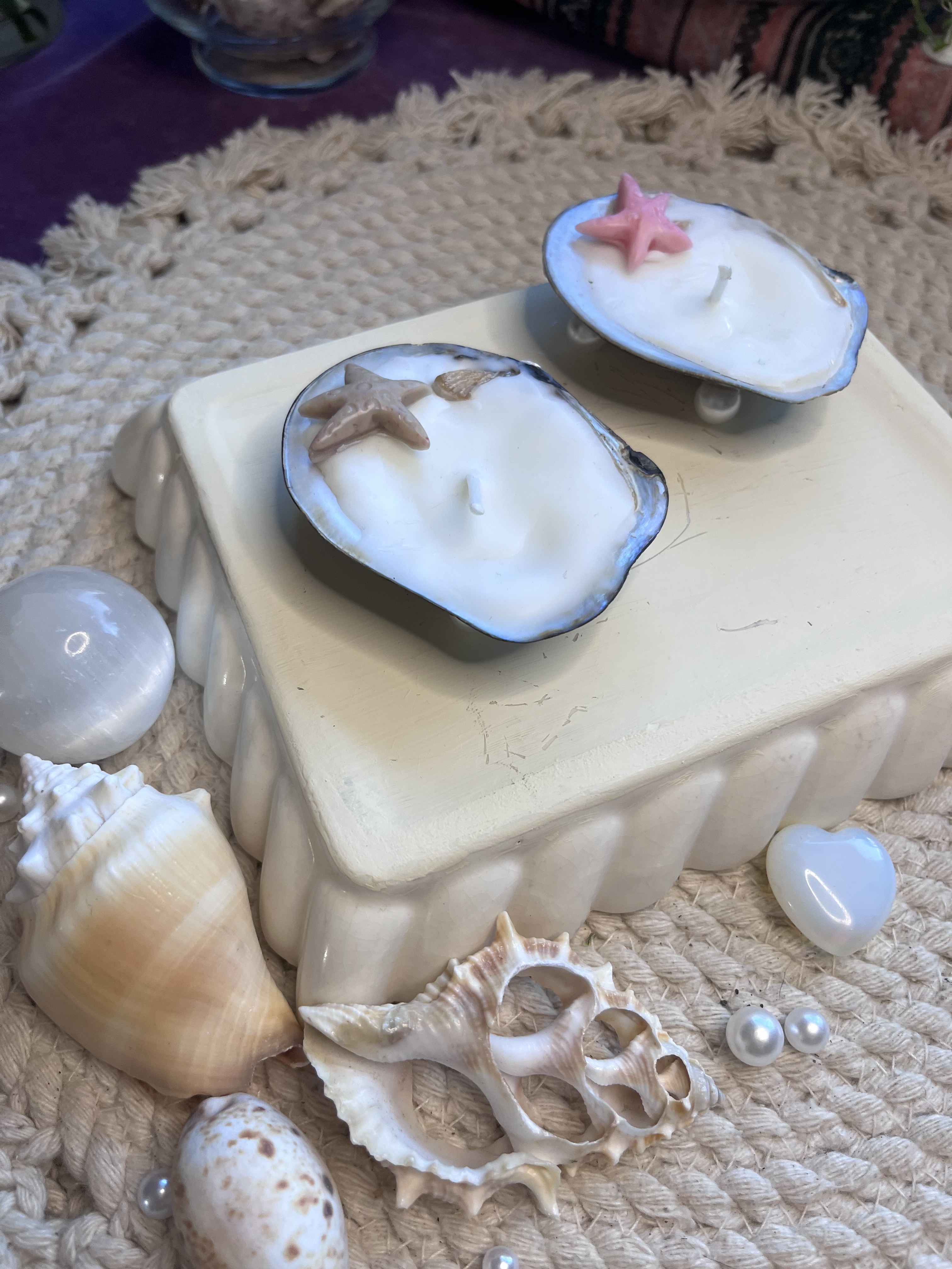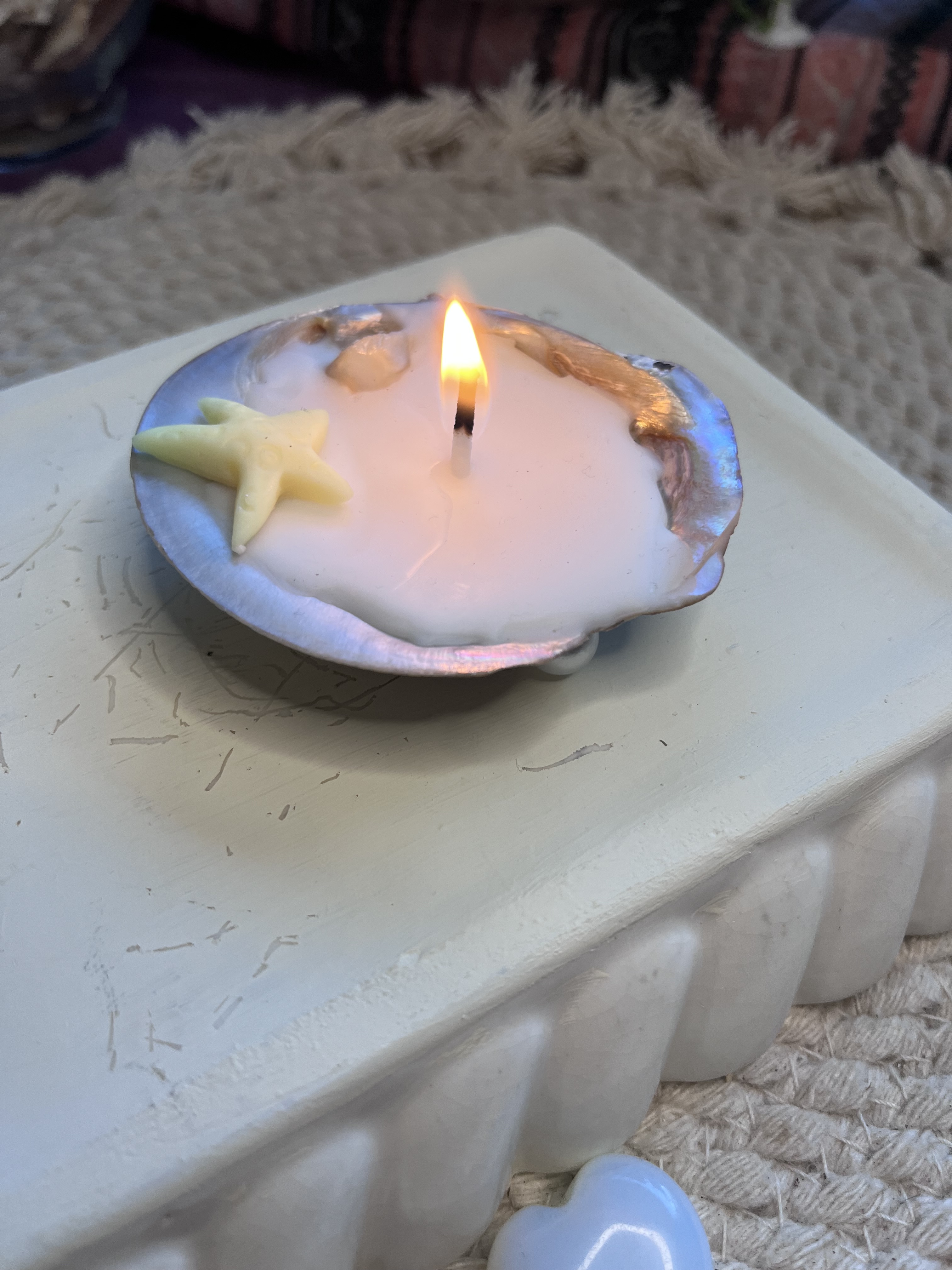 Clam Shell Coconut Soy Wax Candle With Wax Starfish