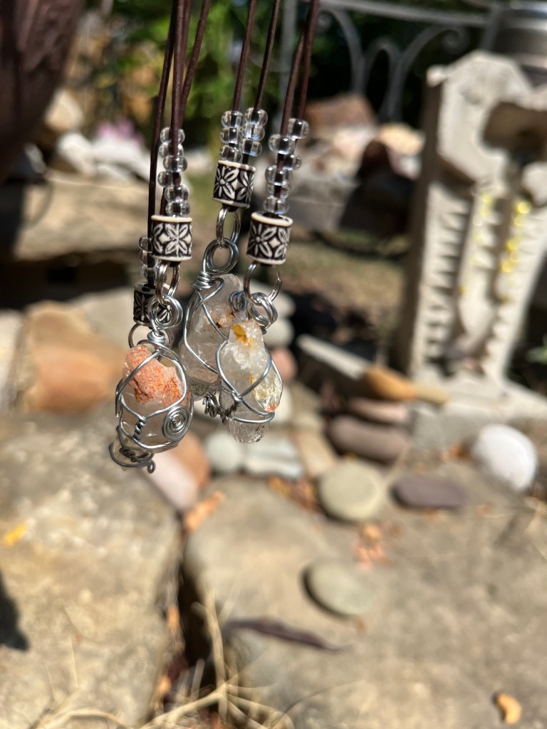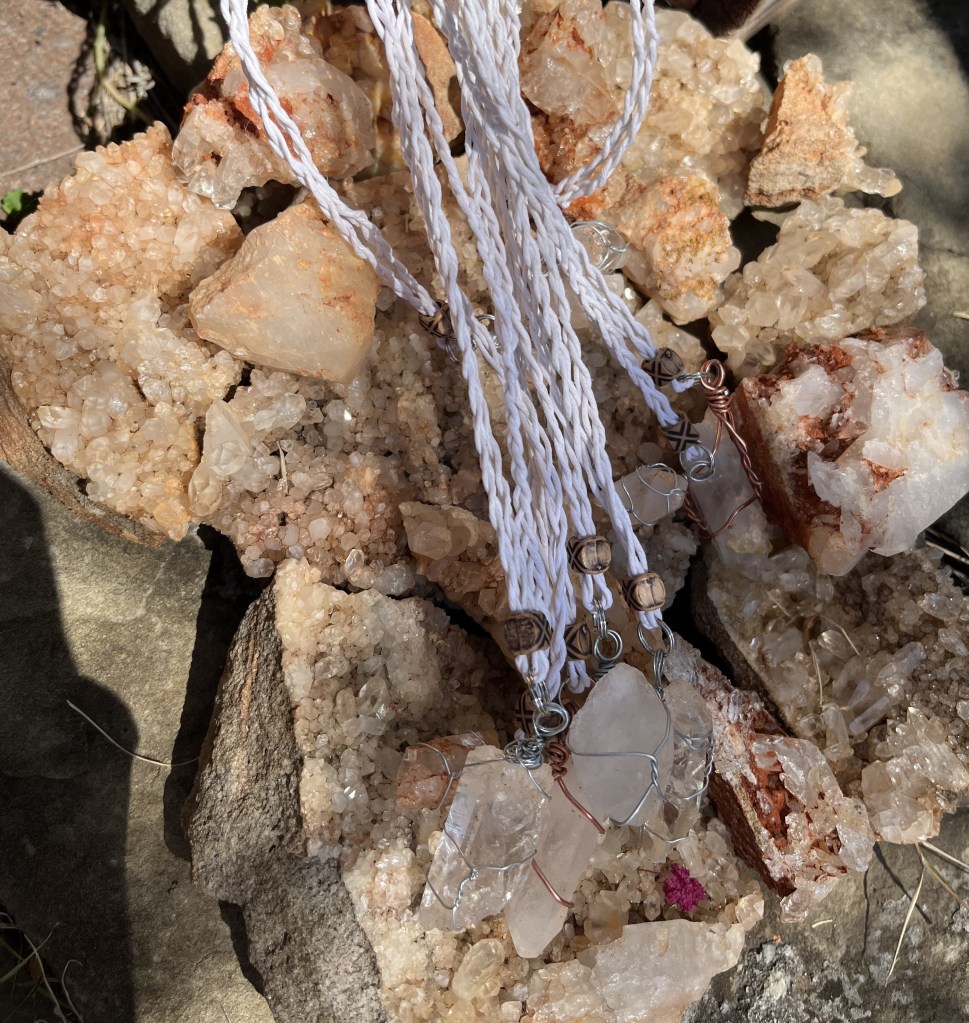 Pure Quartz, Pure Intention. Adjustable neck strap, assortment of crystal sizes, and Sourced locally and naturally ! Wear your crystal energy close to the heart !