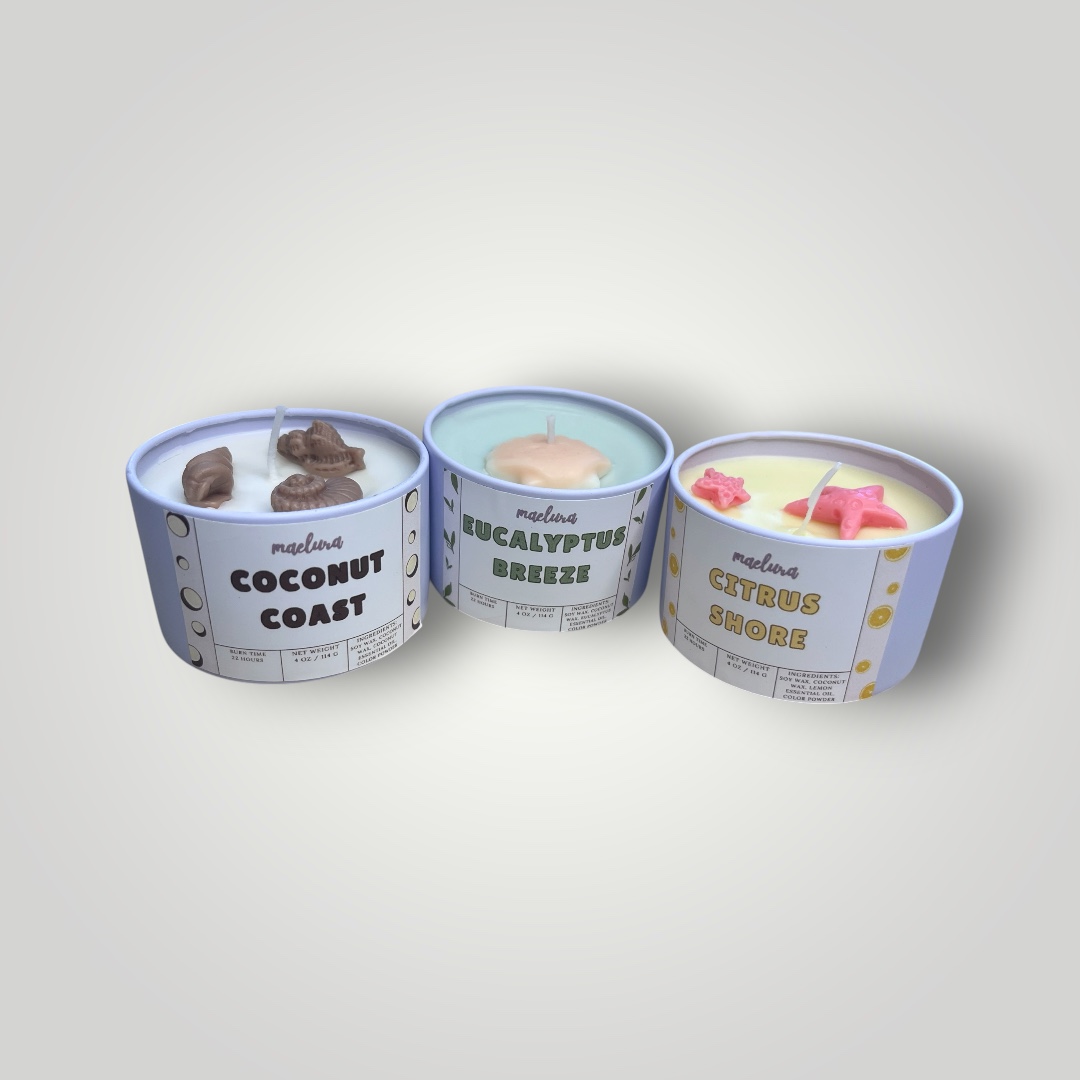 Bring the calming essence of the sea into your home with our handcrafted candle trio. Each candle is thoughtfully designed to capture a unique seaside vibe. Perfect for relaxation, gifting, or elevating your space.