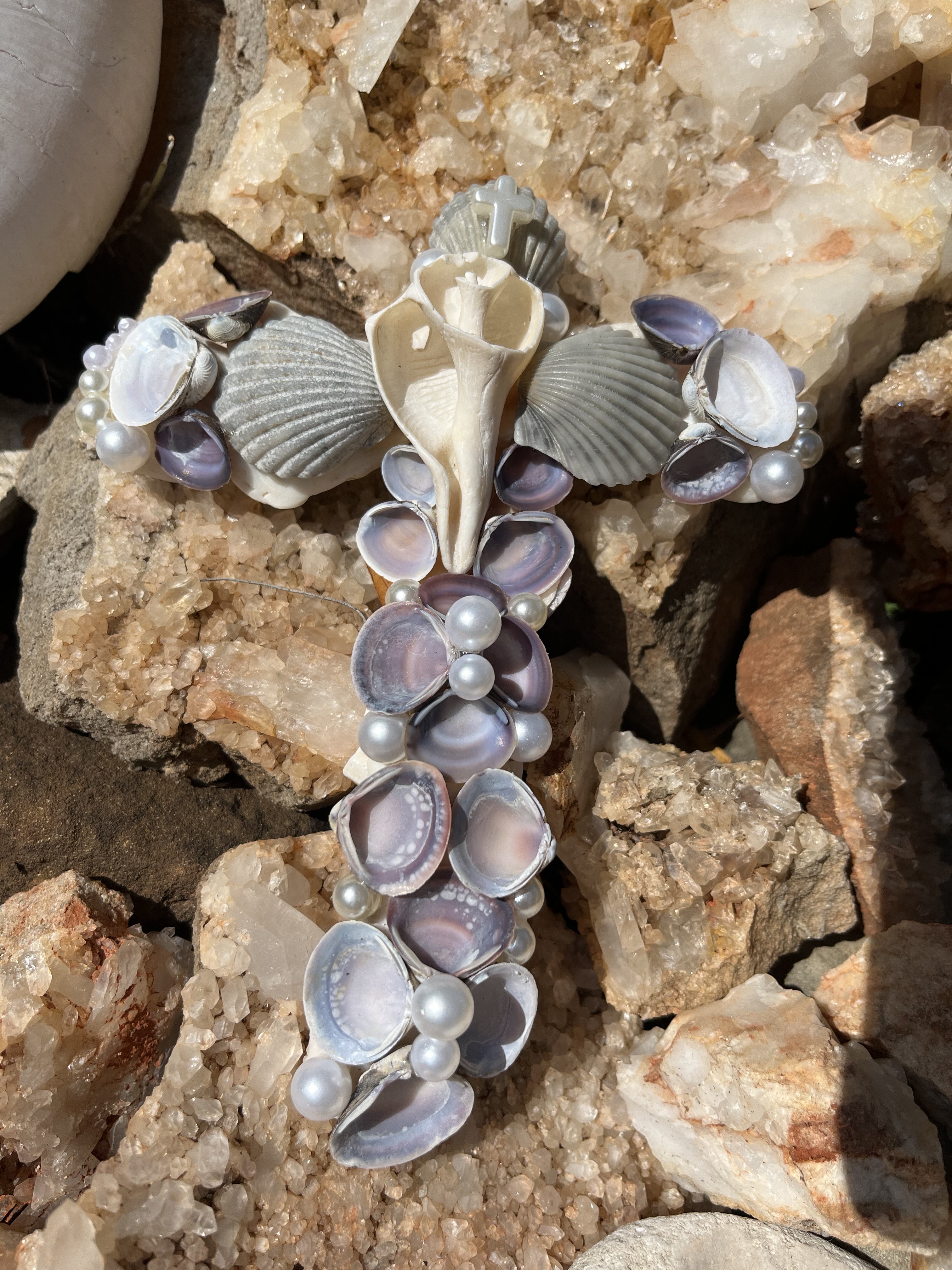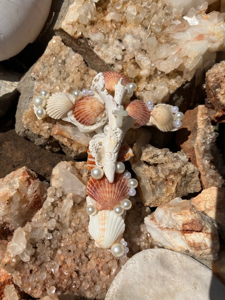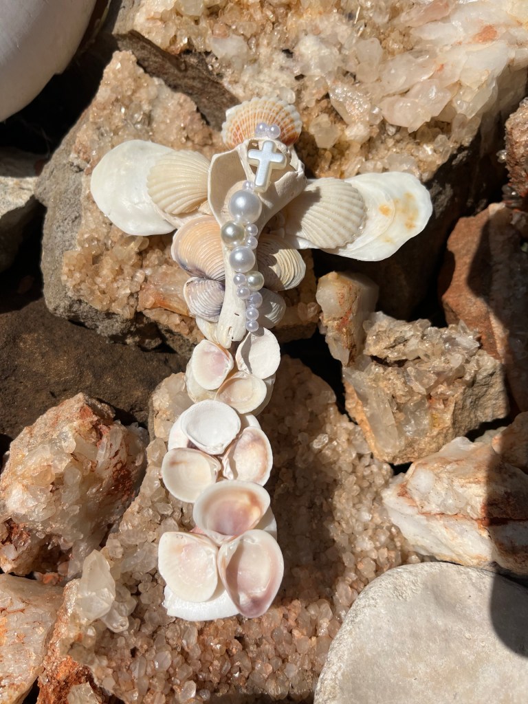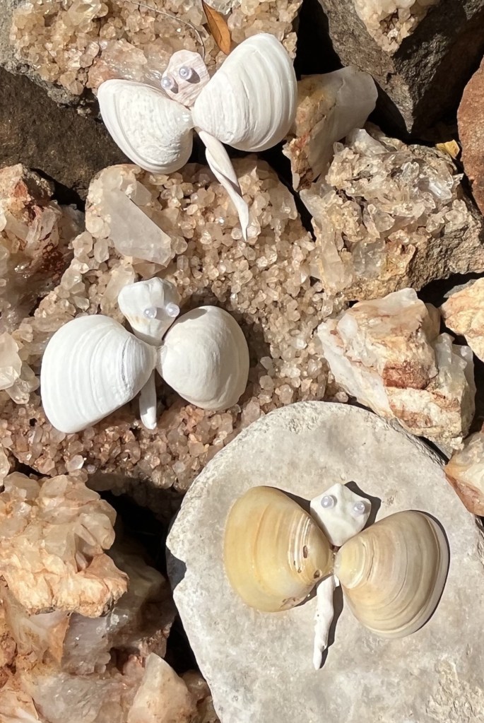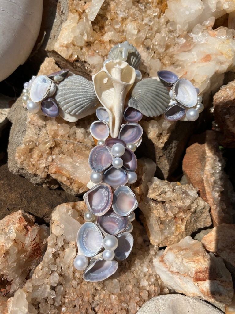 I started branching out to make fun art from shells and this is the journey I am at ! I first got the idea to make the crosses because my Aunt had her birthday and I thought it would be the perfect gift for her ! The flowers started when it was mother’s day. I wanted to give flowers but in my way, so I shelled it up! Now I am playing with many different styles and versions ! My current favorite is the one that looks like a star ! The dragonflies are actually magnets ! I had lots fun making them ! Dragonflies are one of my favorite insects so I looked at a group of shells and immediately thought of making them !